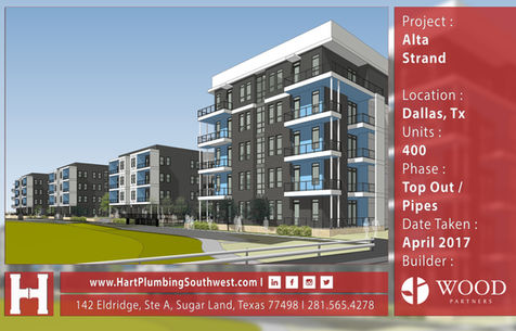 In 2016, Hart Plumbing Southwest was enlisted to offer its multifamily plumbing expertise to Wood Partners in Dallas, Texas as they constructed Alta Strand, a 400 unit mulitfamily project