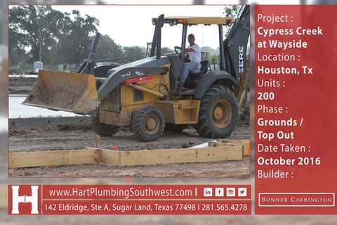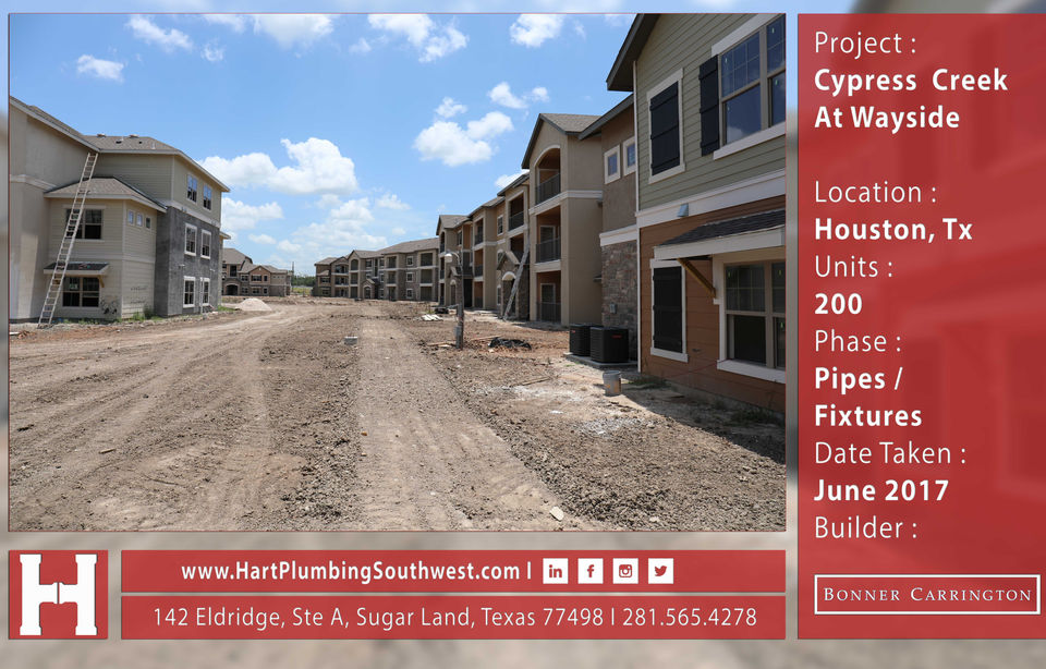 In 2016, Bonner Carrington commissioned a multifamily development in Houston, Texas. Hart Plumbing Southwest's team under Armando Martinez was proud to offer their Houston multifamily plumbing expertise to Bonner Carrington once again on another industry leading Houston apartment plumbing construction project in the Houston, Texas area.
